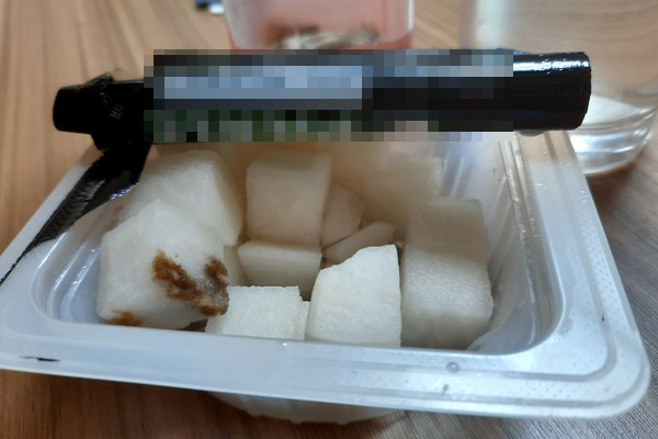 경기도 성남시에 사는 김 모(여)씨는 이달 초 유명 브랜드 치킨을 주문해 서비스로 제공받은 치킨무를 개봉했다가 깜짝 놀랐다. 사각으로 썰린 내용물 중 하나가 부패된 것처럼 갈색으로 변질돼 있었다. 고객센터에 문의하니 "종종 그런 게 나오는데 곰팡이는 아니다"라는 답변을 받았다.