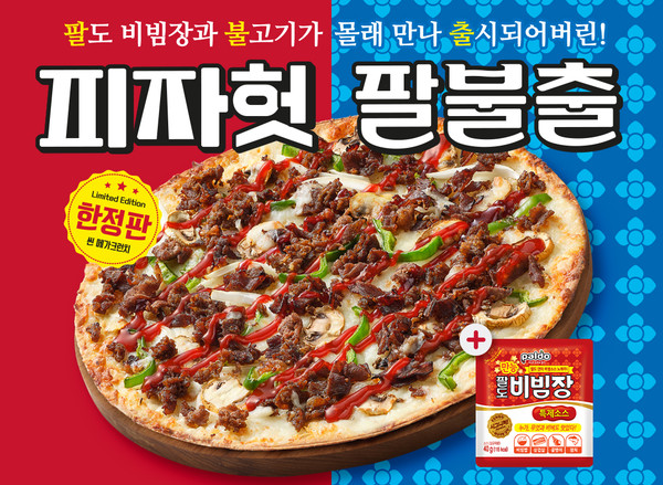 피자헛(대표 김진영)이 팔도(대표 고정완·박태규)와 손 잡고 이달 초 선보인 신메뉴 '팔불출 피자'도 독특한 제품명으로 시선을 끌고 있다. '팔'도비빔면의 비빔장과 '불'고기가 만나 몰래 '출'시됐다는 컨셉으로 각 한 글자씩을 본 따 '팔불출'이라는 제품명이 탄생했다.