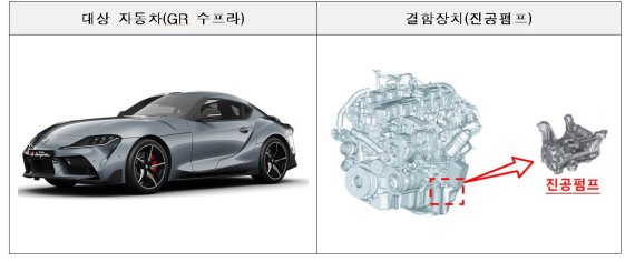 토요타 GR 수프라 64대는 브레이크 진공펌프가 특정 상황에서 오작동으로 손상돼 브레이크 페달이 무거워지고 제동거리가 길어질 가능성이 발견됐다.