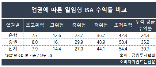그러나 증권사와 은행 간 수익률 격차가 컸다.