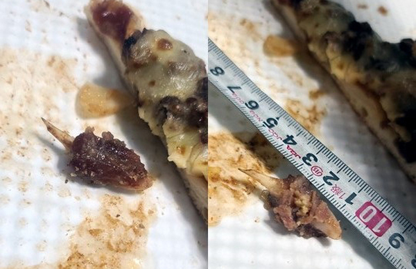 대구광역시 북구에 사는 이 모(여)씨는 지난달 26일 배달앱에서 도미노피자 '취향존중 리얼불고기 피자'를 주문해 가족과 먹던 중 남편의 치아에서 우두둑하는 소리를 듣고 깜짝 놀랐다. 뱉어 보니 4cm가 넘는 날카로운 고기 뼛조각이었다.