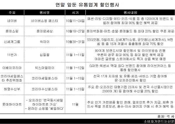 미국 ‘블랙프라이데이(11월26일)’, 중국 ‘광군제(11월11일)’ 등의 영향으로 우리나라 유통업체들도 10월과 11월 가장 큰 폭의 할인행사를 진행한다.