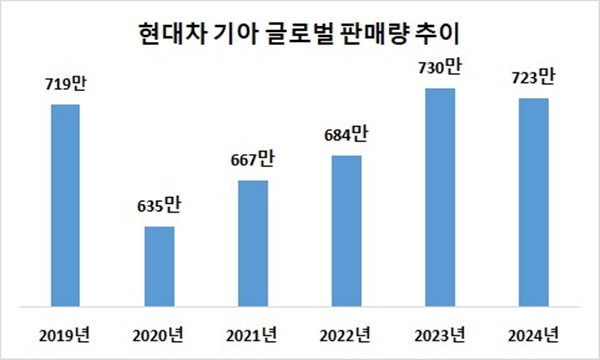 4위 스텔란티스그룹과의 격차는 2023년 97만대에서 지난해는 160만대로 격차를 더욱 벌렸다.