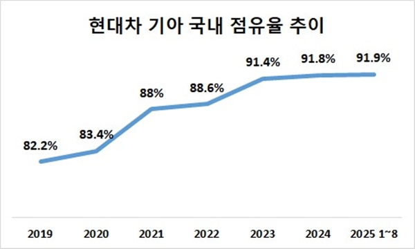 ◆정의선 회장 체제서 국내 점유율 82.2→91.9%...글로벌 톱3 입지 굳혀