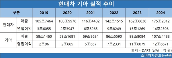 다만 미국 관세 25% 장기화와 현대차, 기아, 현대모비스 노조 파업으로 인해 수천억 원대 손실이 예상되면서 영업이익은 두 자릿수 비율로 감소할 전망이다. 현대차 영업이익은 12조6500억 원, 기아는 10조6500억 원을 기록할 것으로 보인다.