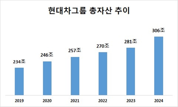 그룹 외형도 꾸준히 커졌다. 특히 지난해는 현대차그룹 총자산도 300조 시대를 열었다.