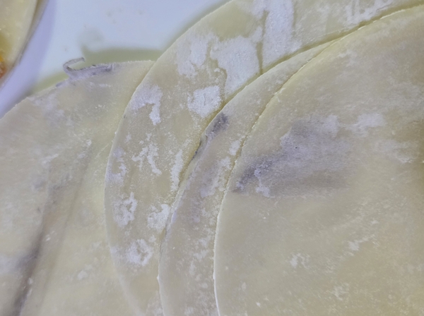 서 씨는 만두를 빚던 중 만두피 일부에 검은 잉크 얼룩처럼 보이는 이물질이 묻어 있는 것을 발견했다. 검은색으로 보아 곰팡이일 가능성도 높다고 추측했다.