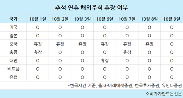 국내 증권사들은 추석 연휴 기간 동안 해외주식 데스크를 운영해 국내 투자자의 해외주식 거래를 지원할 예정이다.