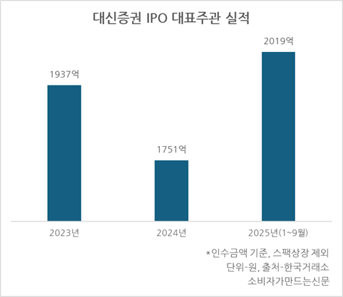 1일 한국거래소에 따르면 대신증권은 올해 3분기까지 총 8개 종목(스팩상장 제외) IPO를 대표주관해 2019억 원의 주관실적(인수금액 기준)을 기록했다.