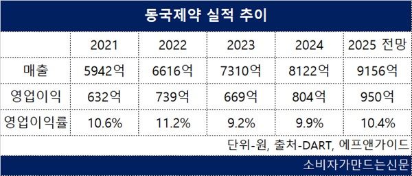 15일 금융정보업체 에프앤가이드에 따르면 동국제약의 올해 매출은 9156억 원, 영업이익은 950억 원으로 전망된다. 전망치가 실현되면 전년 대비 매출은 12.7%, 영업이익은 18.2% 증가한다.