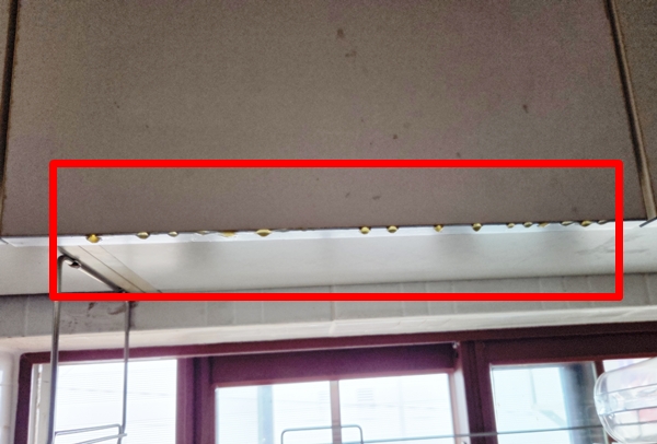 강 씨에 따르면 상단 싱크대 문 아래로 본드로 보이는 진액이 물방울처럼 맺혀 떨어졌다. A사에 문의하니 출장비 5만 원이 부과되며 AS시 비용이 청구된다고 안내했다.