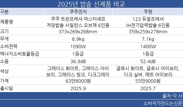 가격은 공식 홈페이지 정가 기준 쿠쿠전자 제품이 63만8000원, 쿠첸 제품이 55만9000원이다.