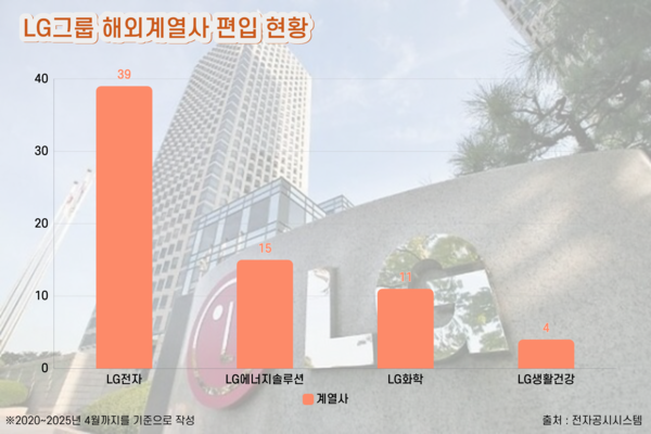 28일 소비자가만드는신문이 2020년부터 2025년 4월 말까지 5년간 LG그룹 해외 계열사 현황을 조사한 결과 편입은 총 83개, 제외는 74개로 집계됐다.