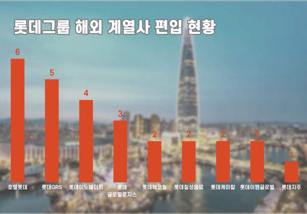 롯데그룹이 2020년 이후 편입한 해외 계열사 40%가 호텔, 외식업, 식음료 등 유통 관련 사업을 영위하는 것으로 나타났다. 해외 계열사 편입을 통해 본업인 유통 사업의 글로벌 확장에 나선 것이다.