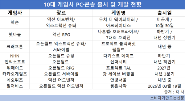 위메이드는 21일 PC·콘솔 신작 '미드나잇워커스'를 출시한다. 프로젝트 TAL도 2027년 목표로 개발 중이다. 카카오게임즈는 '갓 세이브 버밍엄', 펄어비스는 '붉은사막'을 개발 중에 있다. 내년 중 PC·콘솔로 출시된다.