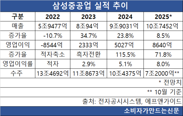 2023년 3월 선임된 최 대표 체제에서 삼성중공업은 첫해 2333억 원의 영업이익을 냈다. 9년 만에 기록한 흑자다. 영업이익은 지난해 5027억 원, 올해는 8640억 원을 기록할 전망이다.