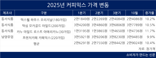 이처럼 커피믹스 제품 가격이 크게 오른 이유는 제조사들의 가격 인상 때문이다.