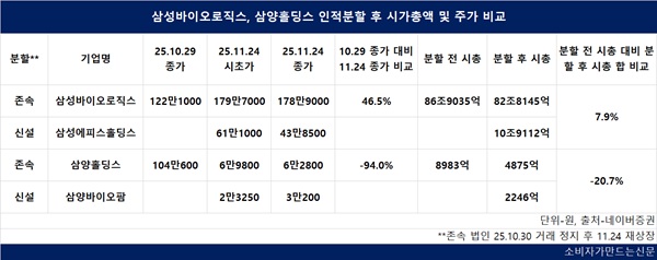 이에 따라 삼성바이오로직스와 삼성에피스홀딩스의 시가 총액 합은 93조7257억 원으로 분할 전 삼성바이오로직스 시총보다 7.9% 상승했다.