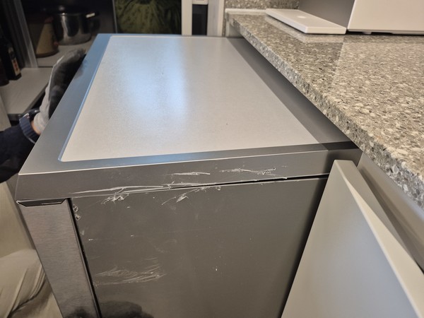 그러나 이후 진행된 교체 작업 과정에서도 추가 피해가 발생했다. 싱크대 옆면과 식기세척기 측면에 깊은 스크래치가 생겼으며 싱크대 하부장을 절단하는 과정에서 LED 조명선이 끊어져 더 이상 사용할 수 없는 상태가 됐다.