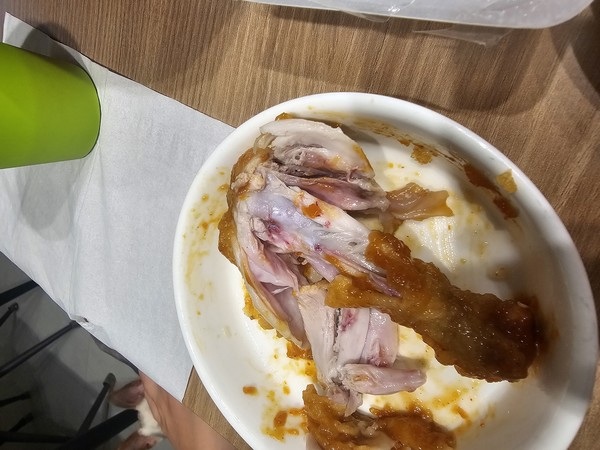 김 씨에 따르면 치킨 반죽 밀가루도 덜 익었고 피맛이 난 살코기는 군데군데 핏빛이 보였다.