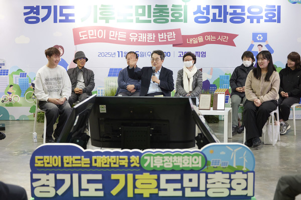 경기도는 26일 수원시 고색뉴지엄에서 ‘기후도민총회 성과공유회’를 열고 기후기본권 보장을 위한 미래세대 비전문 발표와 함께 기후 정책 20건이 담긴 권고문 전달식을 가졌다.