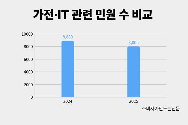 모바일 부문에선 지난 9월 출시된 '아이폰17' 시리즈 관련 소비자 민원이 다발했다. 애플은 아이폰 시리즈를 국내에 출시할 때마다 초도물량을 충분히 확보해 놓지 않아 재입고까지 최대 수개월이 걸리는 사태를 빚었다.