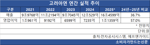 고려아연(대표 박기덕·정태웅)이 올해 매출과 영업이익이 모두 큰 폭 늘어나면서 역대 최대 실적을 기록할 전망이다. 귀금속 가격 강세와 전략광물 생산 확대 덕분이다.
