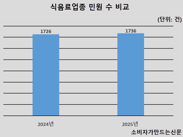 올해 식음료 부문 소비자 민원은 지난해보다 소폭 증가했다. 이물질이 발견됐거나 제품 일부가 변질되는 등 안전 관련한 민원이 주를 이뤘다.