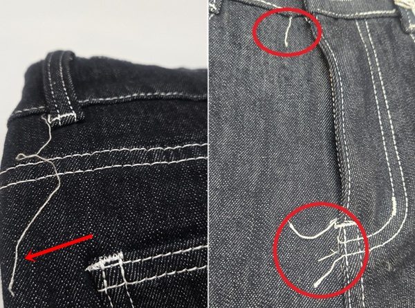 새 바지는 박음질이 끝나는 부분마다 실밥이 그대로 길게 늘어져 있었다. 단순히 실밥 정리가 안 된 수준이 아니라 앞으로 입거나 세탁할 때 변형이 우려될 정도였다고.