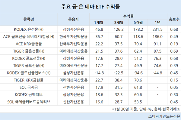 금·은 테마 ETF의 높은 수익률에 주목해 해당 상품에 대한 투자자금도 몰리고 있다.