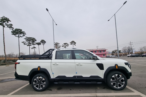 심플하면서도 각진 디자인으로 픽업트럭 이미지를 강조한 후면부는 대형 KGM 레터링이 새겨진 테일게이트 가니쉬가 적용된 데크 디자인과 풀 LED 리어 콤비램프가 적용됐다.