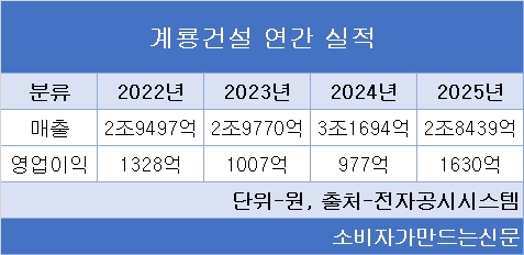 현재 계룡건설은 시공능력평가 15위로 지난해 창사 이후 최고 순위를 기록했다. 공공수주 경쟁력과 주택사업 확대를 기반으로 외형 성장과 수익성을 동시에 끌어올린다는 계획이다.