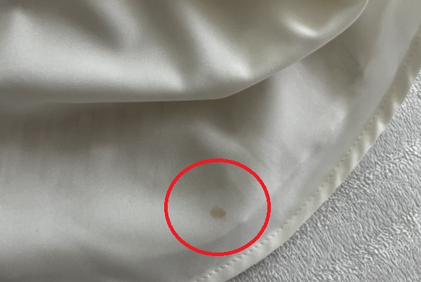 새 상품이 아닌 듯해 확인하고자 꼼꼼히 살펴보니 목둘레에는 때가 끼어 있고 옷 전면에는 음식물을 흘린 자국이 두 군데서 발견됐다.