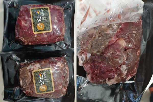 용인에 사는 김 모(여)씨는 이커머스 플랫폼에서 냉장 한우를 구매했다. 받고 보니 두 봉지 중 한 봉지 속 고기 색깔이 갈색이어서 개봉했더니 썩은 냄새가 진동했다.