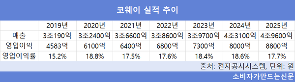 방 의장 체제에서 코웨이는 연 평균 매출 증가율이 10%에 달한다.