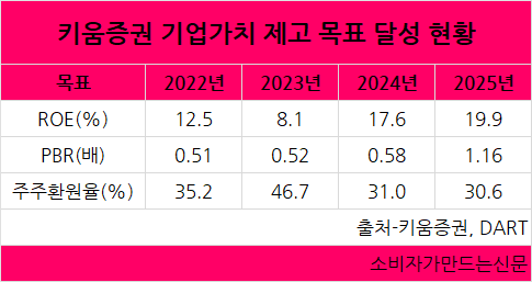키움증권, 호실적으로 ROE·PBR 등 밸류업 목표 조기 달성...다음 목표는 고배당?