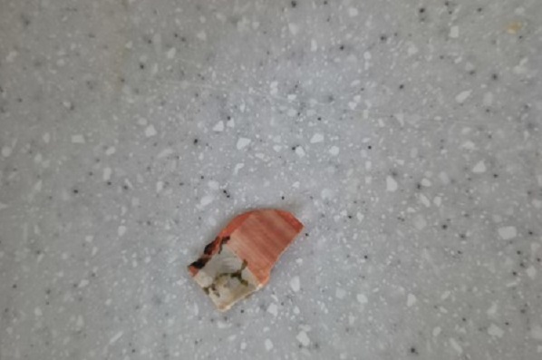 처음에 잘 씹히지 않아도 고춧가루려니 생각해 대수롭지 않게 여겨 삼켰는데 또다시 이물감이 들어 뱉어보니 약 2cm가량의 비닐 조각이었다. 이 씨는 비닐의 색상 등으로 보아 육개장 포장지로 추정하고 있다.