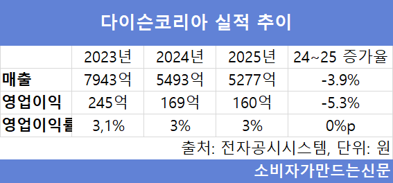 다이슨코리아는 2년 연속 실적 내림세를 보였다. 주력 프리미엄 제품인 무선청소기 부진이 원인으로 꼽힌다. 2016년과 2017년 국내 무선청소기 붐의 주역이었던 다이슨코리아는 한때 점유율이 80%에 육박했던 업체다. 이후 LG전자가 '코드제로 A9'으로 시장 경쟁에 합류하면서 점차 점유율이 줄었고 삼성전자 '제트'까지 가세하면서 파이가 축소됐다.