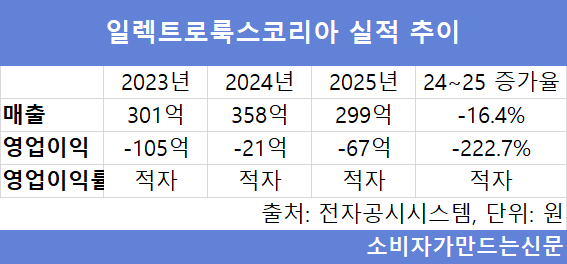 일렉트로룩스코리아는 실적부진이 지속되고 있다. 과거 무선청소기 시장에서 독보적인 입지를 자랑했지만 중국 업체가 국내 시장을 장악하면서 고전하고 있는 것으로 분석된다. 일렉트로룩스는  2020년 적자 전환한 이후 지난해까지 6년 연속 손실을 냈다.