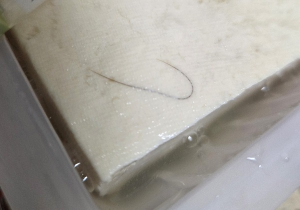 ◆ 두부에 '콕' 박힌 체모, 경악=경기도 화성에 사는 송 모(여)씨는 대형 온라인몰 A사에서 전용으로 판매하는 두부를 구매했다. 비닐 포장을 개봉한 순간 두부에 스며들듯 박혀 있는 이물질을 발견하고 기겁한 송 씨. 모양이나 크기로 미루어 보아 체모라는 확신이 들었다고. 두부에 고정된 모습도 포장이 아닌 제조 단계에서 혼입된 걸로 추정됐다. 송 씨는 "평소에도 자주 구매했는데 신뢰가 무너졌다. 앞으로 어떤 두부를 구매하더라도 이 이물질이 떠오를 것 같다"고 하소연했다.