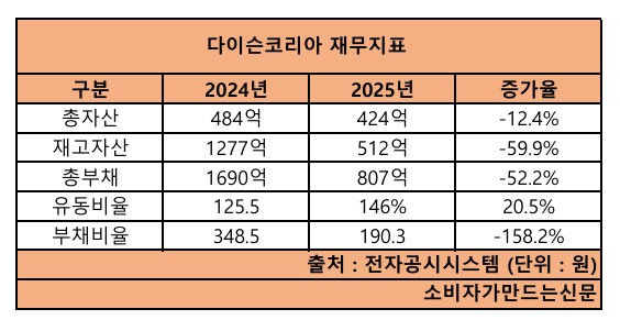 2024년 1277억 원이었던 재고자산은 지난해 521억 원으로 59.2%(756억 원) 감소했다.